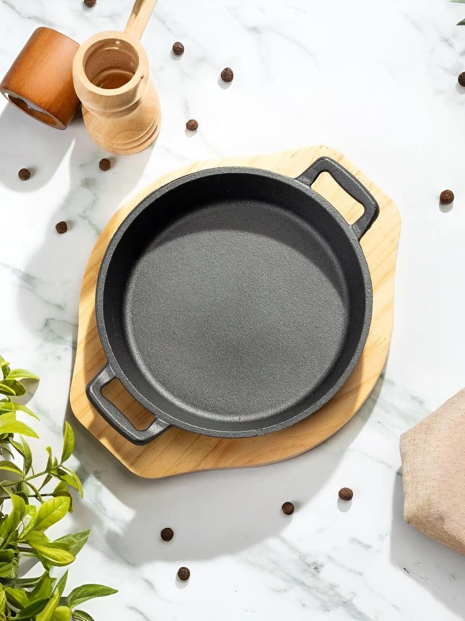 Если вы ищете, какую сковороду выбрать для дачи или компактной кухни, обратите внимание на универсальную форму и удобные две ручки. В отличие от алюминиевых и тефлоновых аналогов, чугун не боится высоких температур и открытого огня — можно использовать на гриле или в духовке. Как использовать чугунную сковороду впервые? Перед первым применением рекомендуется прокалить сковороду с маслом для естественного антипригарного эффекта. Бамбуковая подставка позволяет подавать блюда прямо на стол, не повреждая поверхность.