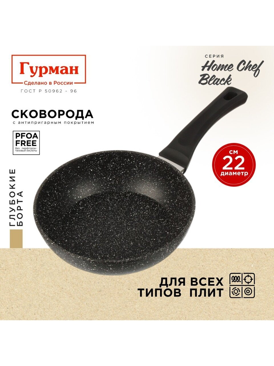 Закажите сковороду Гурман HomeChef Black 22 см прямо сейчас — получите гарантию 36 месяцев, быструю доставку и выгодную цену. Подарите себе удобство и уверенность в качестве каждого блюда!