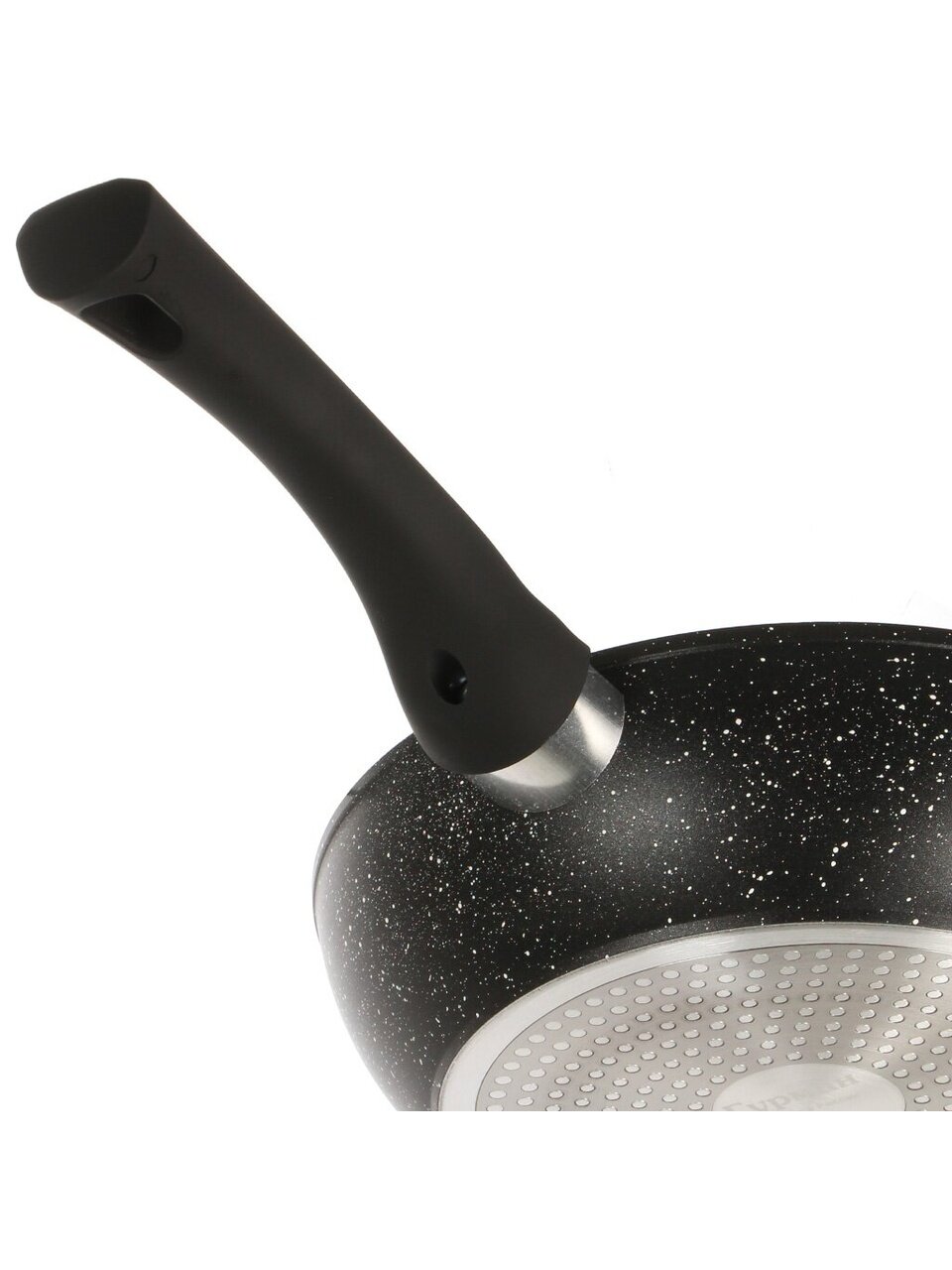 - Оптимальный диаметр 22 см, толщина дна 3 мм и стенок 2,65 мм — равномерный нагрев и долгий срок службы