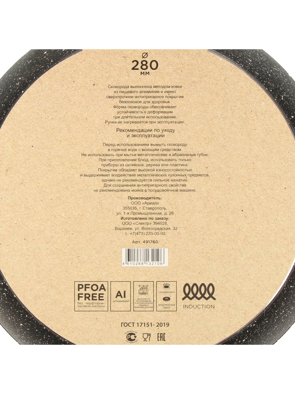 - Оптимальный диаметр 28 см, толщина дна 3 мм и стенок 2,89 мм — равномерный нагрев, долговечность, подходит для индукции