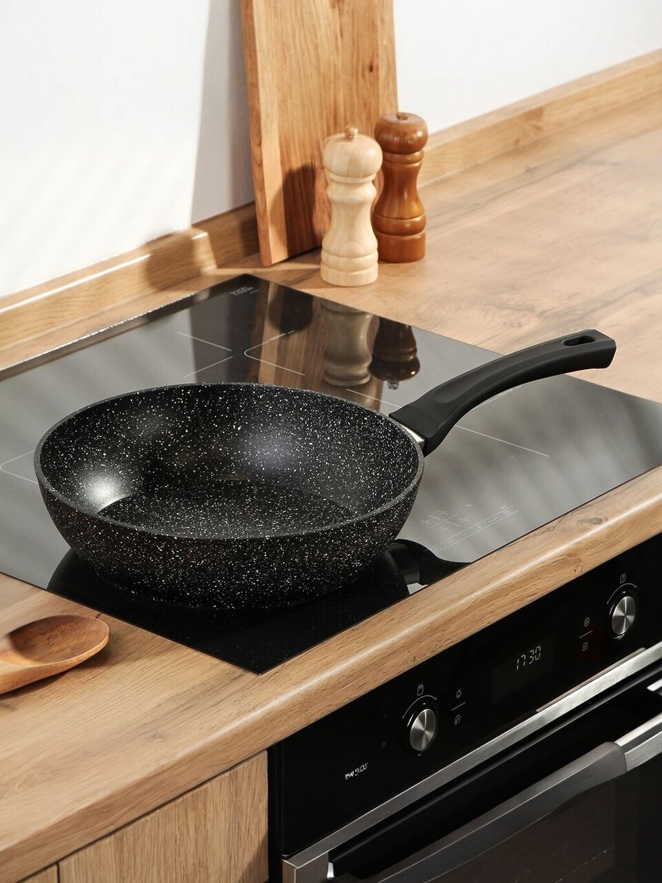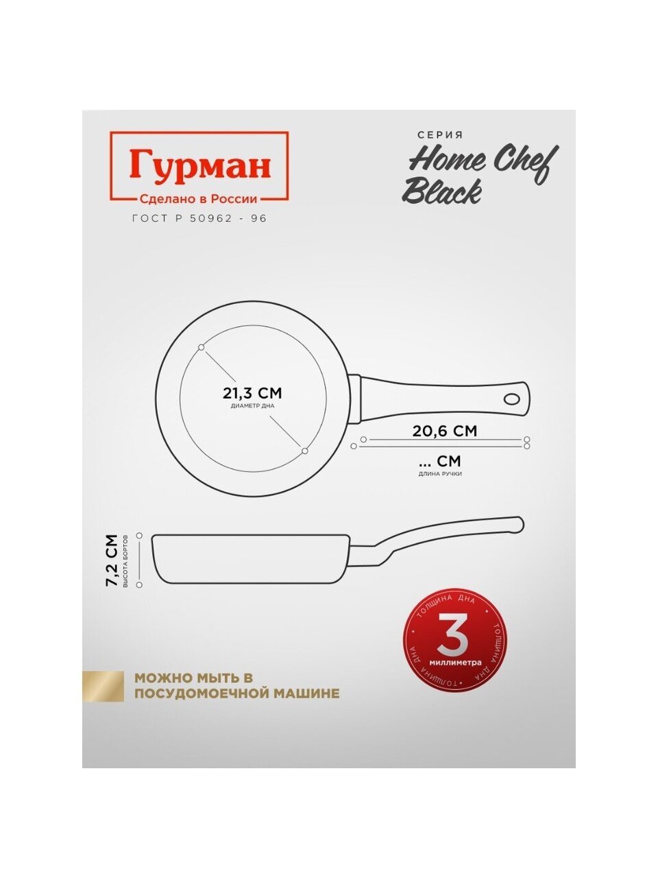 Если вы ищете, какую сковороду выбрать для индукционной плиты или газовой, модель Гурман HomeChef Black — оптимальный вариант для ежедневного использования. Лёгкий алюминий быстро нагревается и обеспечивает равномерное приготовление, а современное антипригарное покрытие PFLUON позволяет готовить с минимальным количеством масла, что актуально для здорового питания. В отличие от обычных чугунных или дешёвых тонких моделей, эта сковорода не деформируется и сохраняет эстетичный вид даже при частой мойке в посудомоечной машине.