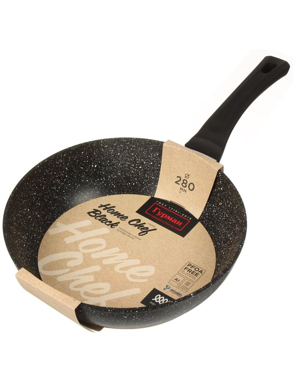 Сковорода алюминиевая 28 см Гурман HomeChef Black — антипригарная классика для индукции: готовьте быстро, легко, без пригорания и лишнего масла.