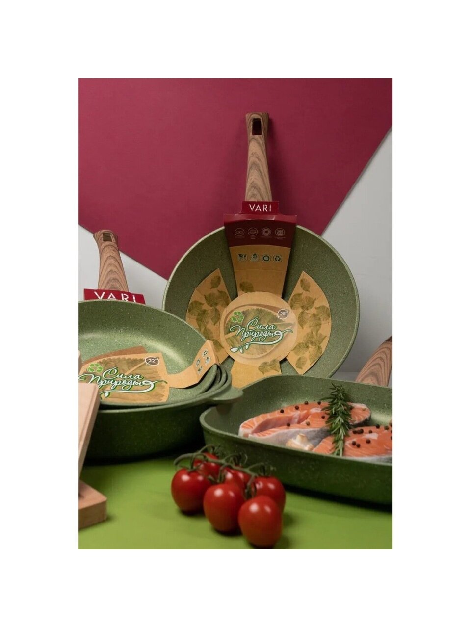 Сковорода Vari Сила природы 26 см из литого алюминия — идеальный выбор для здорового питания: антипригарное покрытие Quantum2, прочность и универсальность для дома и дачи.