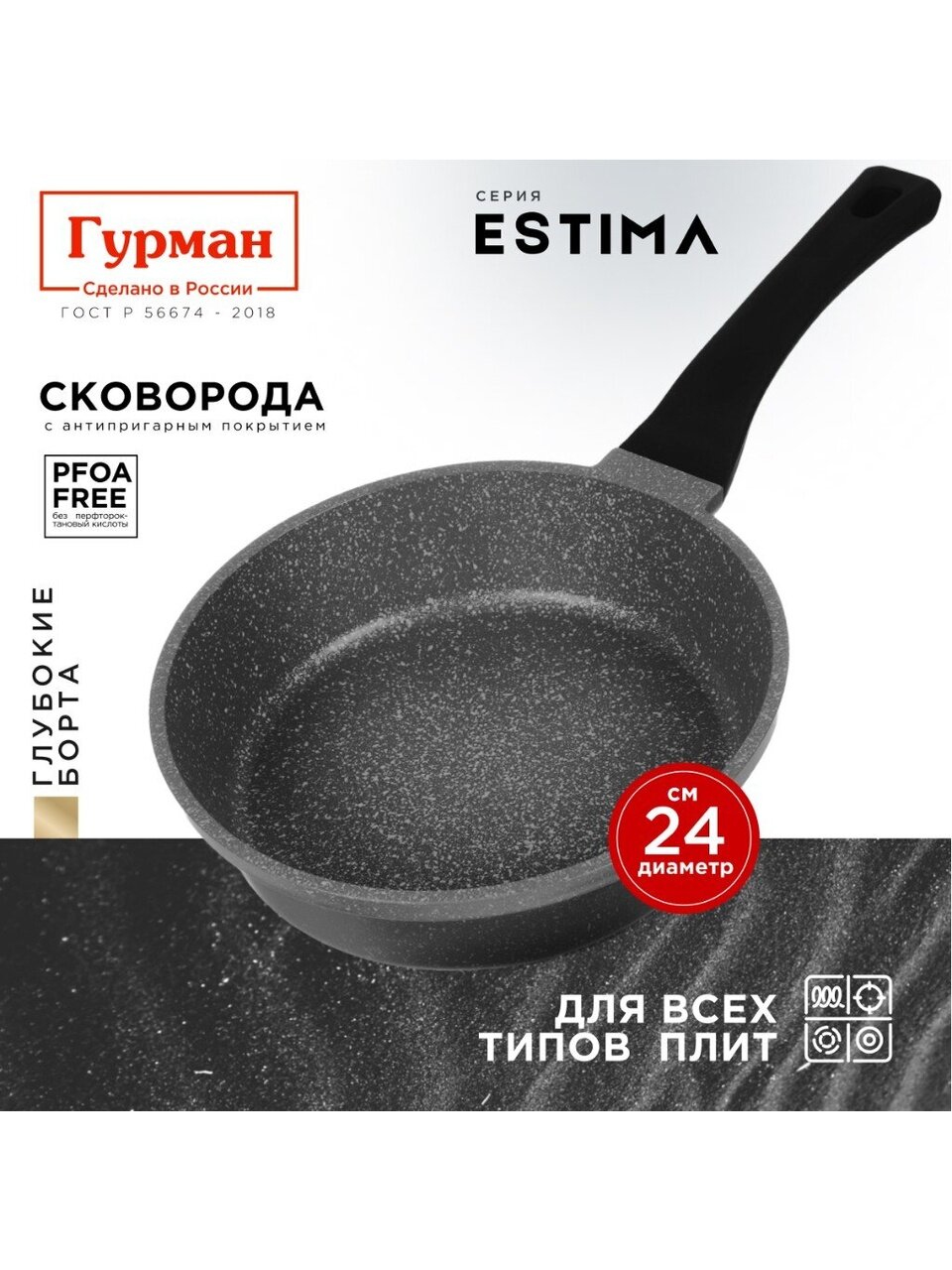 Закажите сковороду Гурман Estima 24 см по выгодной цене — получите универсальный инструмент для здорового и вкусного питания с доставкой и официальной гарантией.