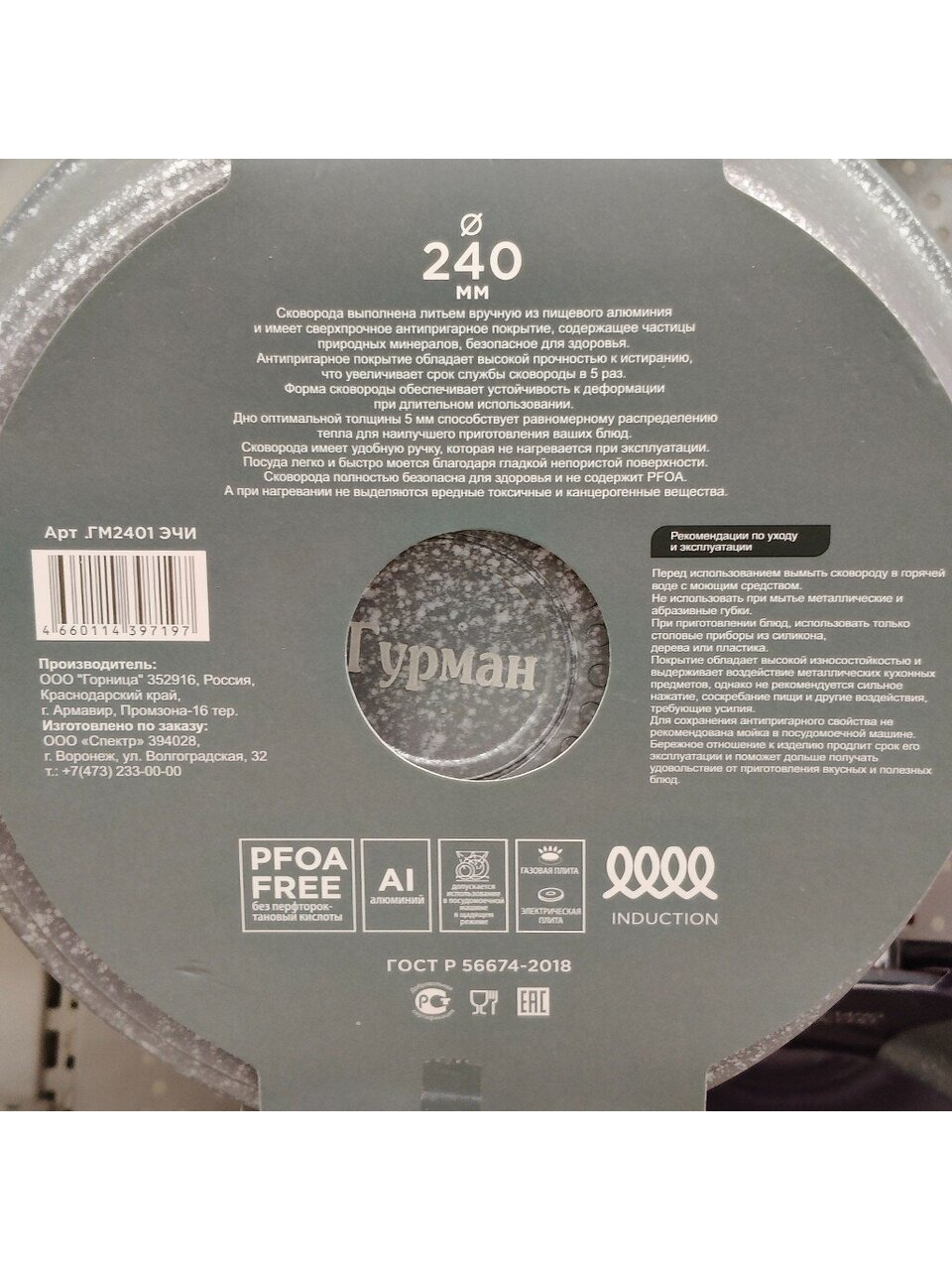 Вы можете приобрести «Сковорода литой алюминий, 24 см, антипригарное покрытие, Гурман, Estima, серая, индукция, ГМ2401 ЭЧИ» и другие товары в нашем интернет-магазине в Обнинске по низким ценам и с бесплатным самовывозом.