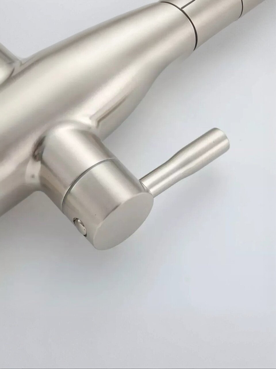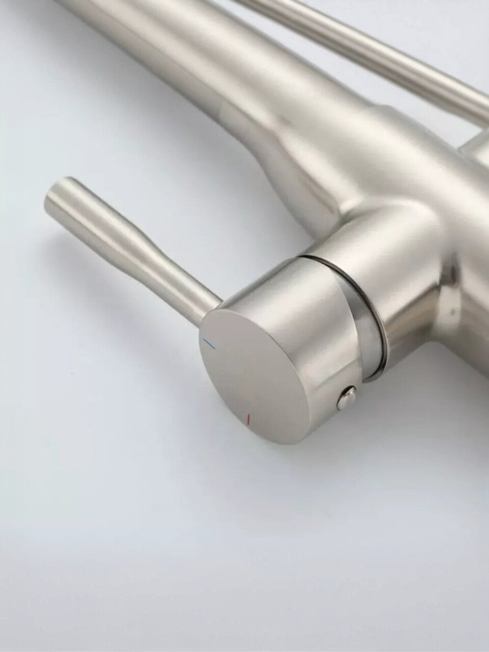 Часто спрашивают: «Подходит ли этот смеситель для подключения фильтра?» — да, есть отдельный переключатель на фильтр, что избавляет от необходимости ставить дополнительный кран. В отличие от моделей с пластиковым корпусом, латунь не впитывает запахи и устойчива к перепадам температуры. Монтаж через 1 отверстие (диаметр 54 мм) и стандартная подводка 1/2" позволяют быстро заменить старый смеситель без перепланировки кухни.