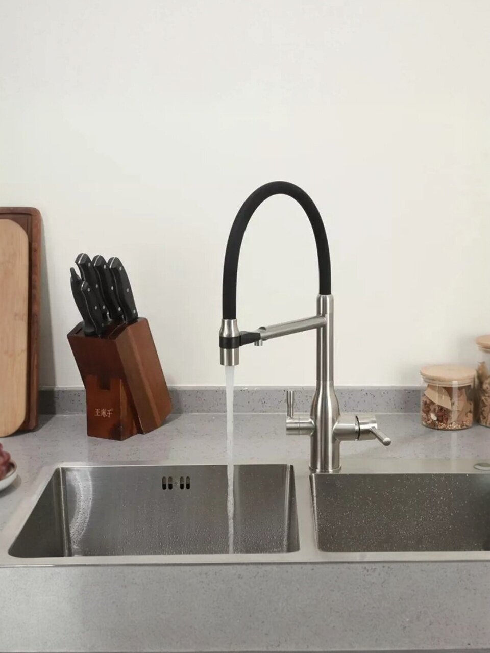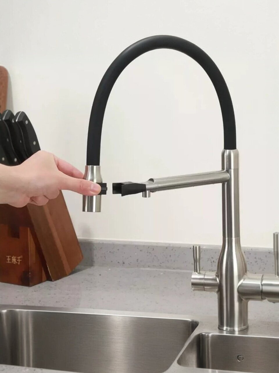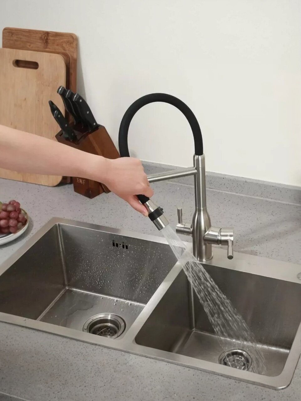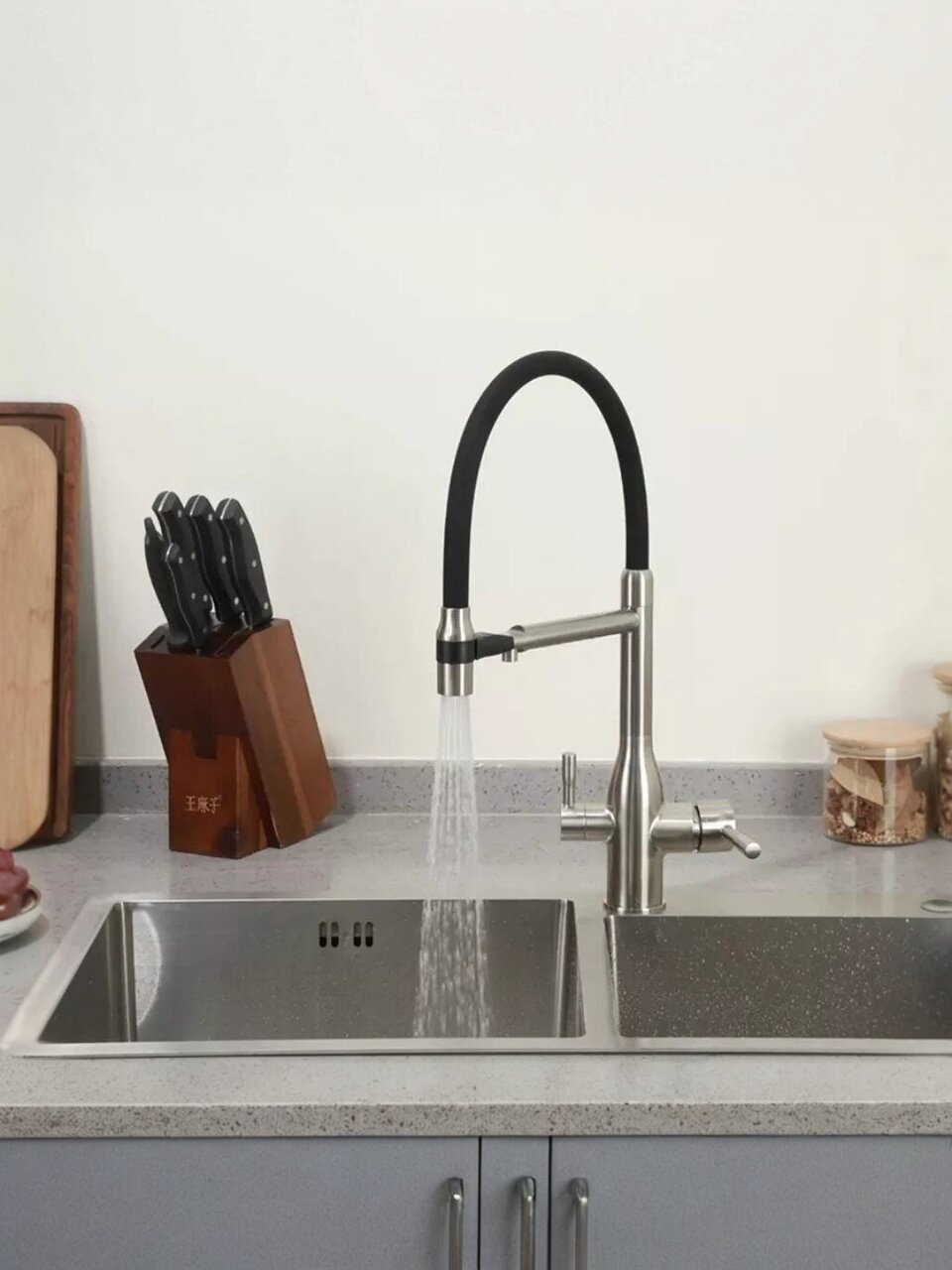 Если вы ищете, чем отличается смеситель с гибким изливом — обратите внимание на простоту ухода и универсальность: поворотный механизм, аэратор для экономии воды и современный стиль отлично впишутся в любой интерьер. Такой кран подойдет для семьи, где важна фильтрация воды и удобство эксплуатации.