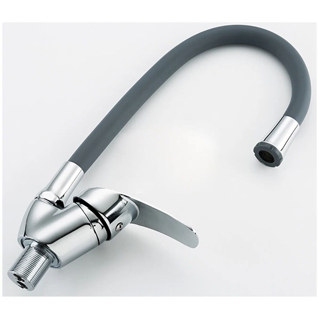 В отличие от аналогов с пластиковым корпусом или коротким изливом, эта модель имеет среднюю длину (17 см), высокий поворотный излив и надежное крепление на гайке. Это делает ее удобной для ежедневного использования и устойчивой к износу. Отсутствие дополнительных функций вроде водонагревателя упрощает обслуживание и снижает риск поломок.