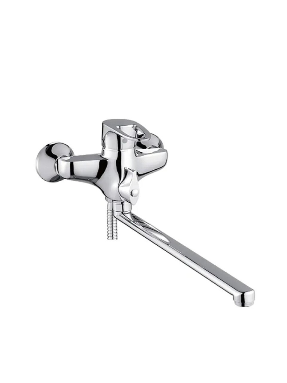 Длинный поворотный излив позволяет удобно набирать воду в ванну или использовать смеситель для душа, облегчая мытьё волос, купание детей и даже наполнение вёдер — удобно для дома и дачи.