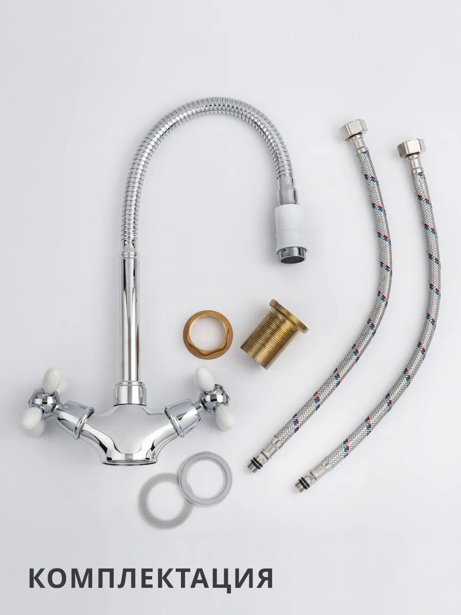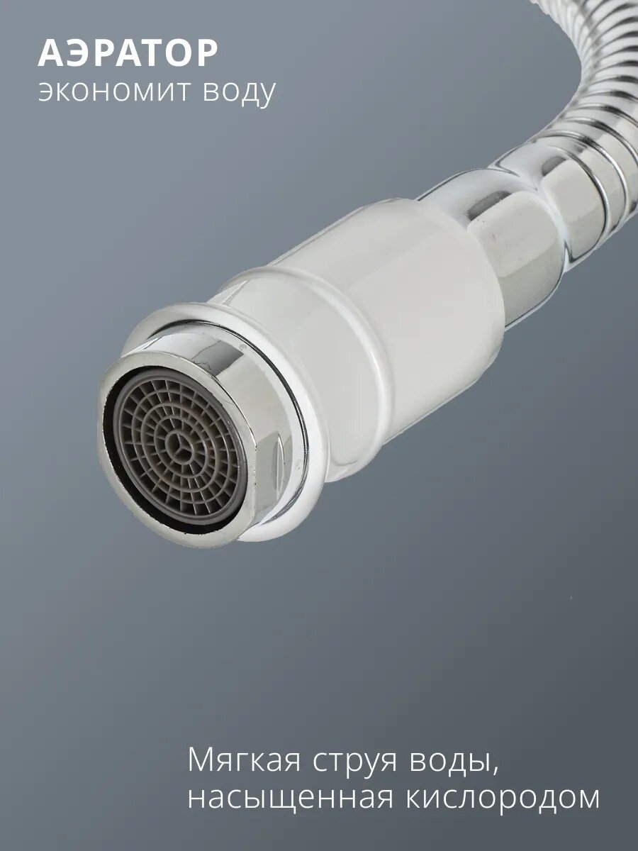 Гибкий смеситель Aqwin для кухни: современный дизайн, излив 35 см, хром — удобство, долговечность и защита от излома по выгодной цене