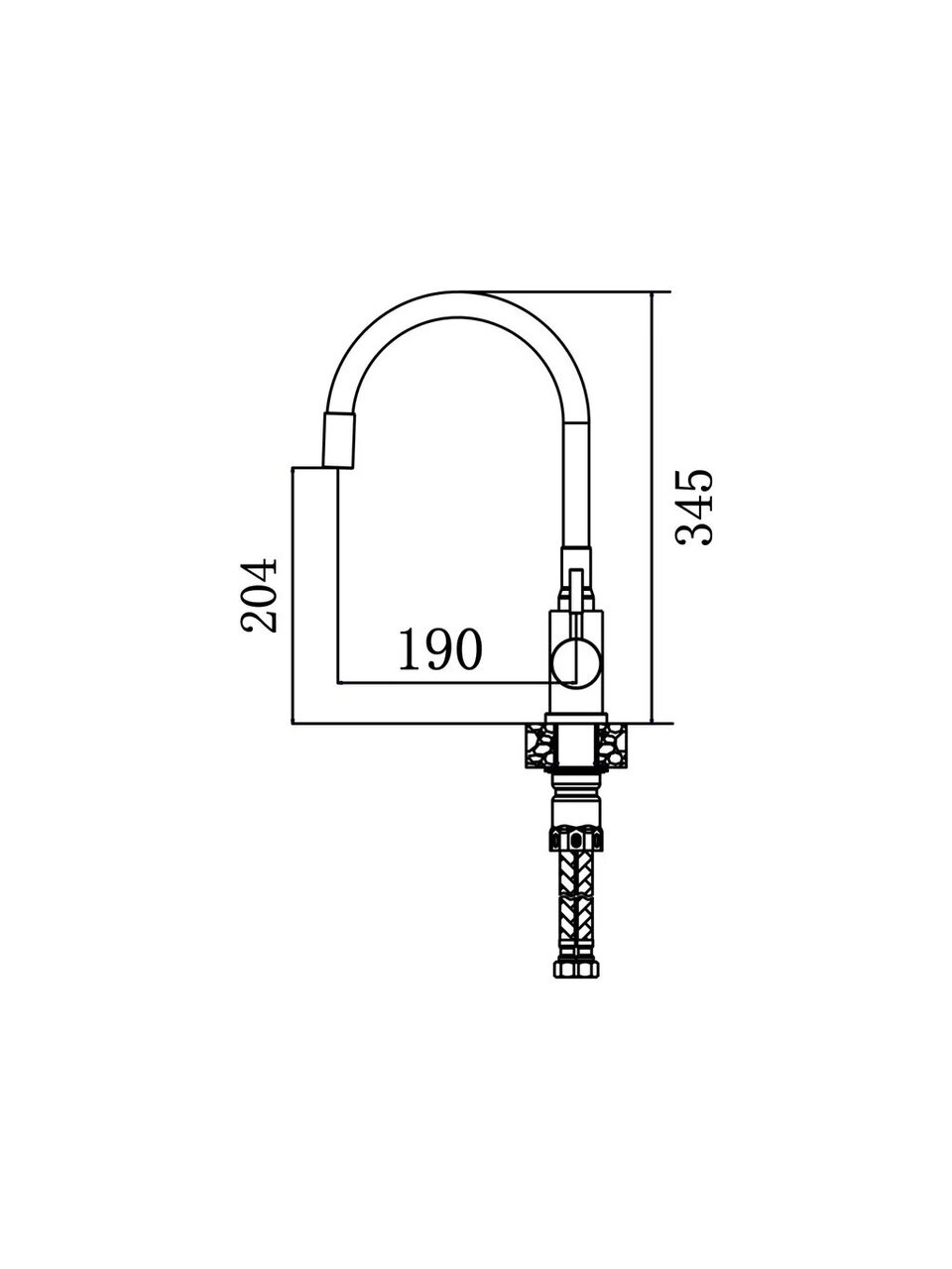 Высота излива — 29,3 см, длина — 19,2 см. Гибкая конструкция облегчает доступ к любой части мойки и подходит для мытья крупной посуды.