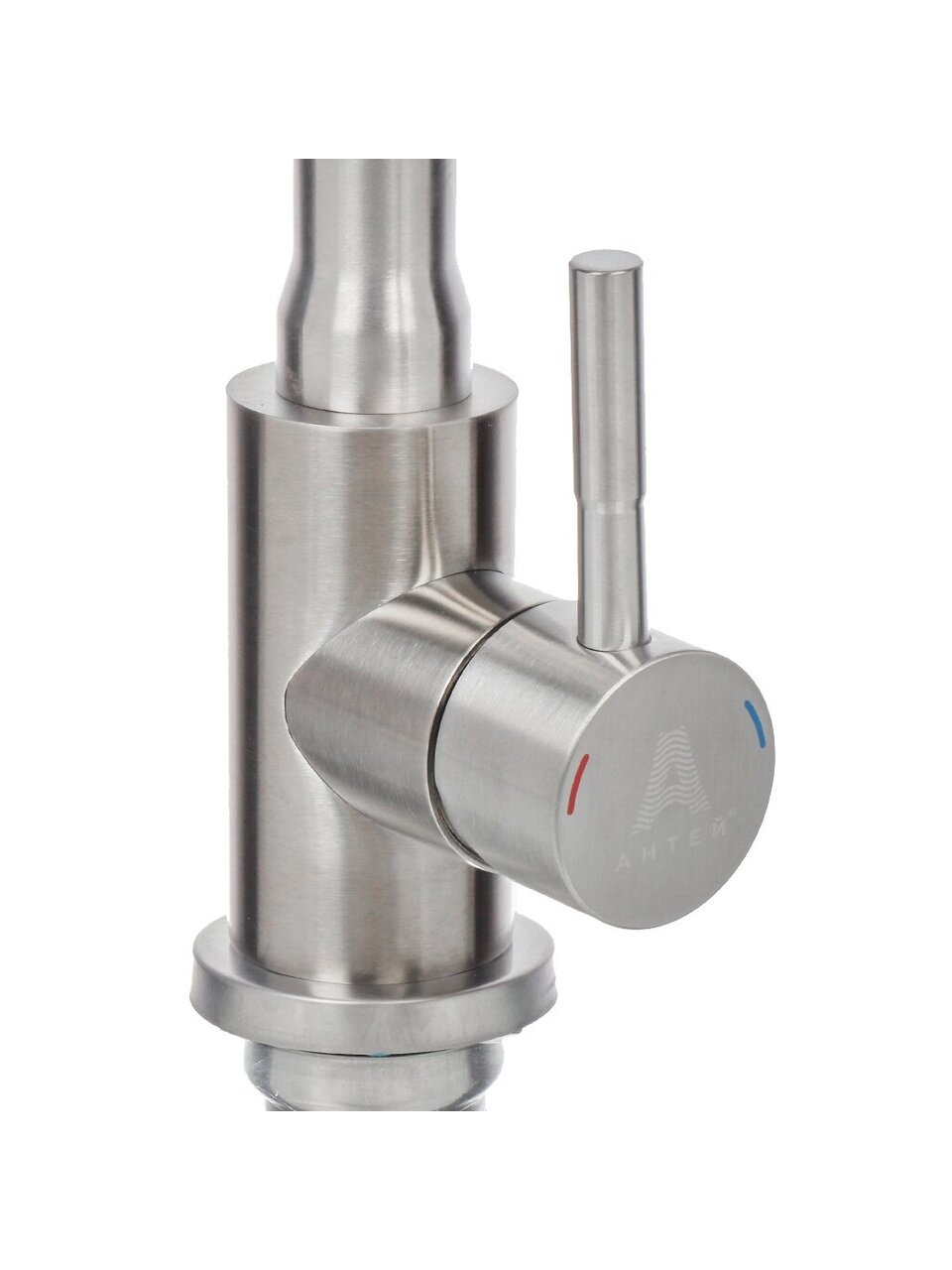 Часто спрашивают: «Как выбрать смеситель для кухни с гибким изливом?» или «Подходит ли этот смеситель для дачи?» — Антей Дюна выполнен из прочной нержавеющей стали, оснащён керамическим картриджем и рассчитан на долгий срок службы. В отличие от моделей с пластиковым корпусом, он не подвержен деформации и отлично выдерживает ежедневную эксплуатацию. Установка смесителя максимально простая — монтаж в одно отверстие диаметром 35 мм, подходит для большинства стандартных кухонных моек.