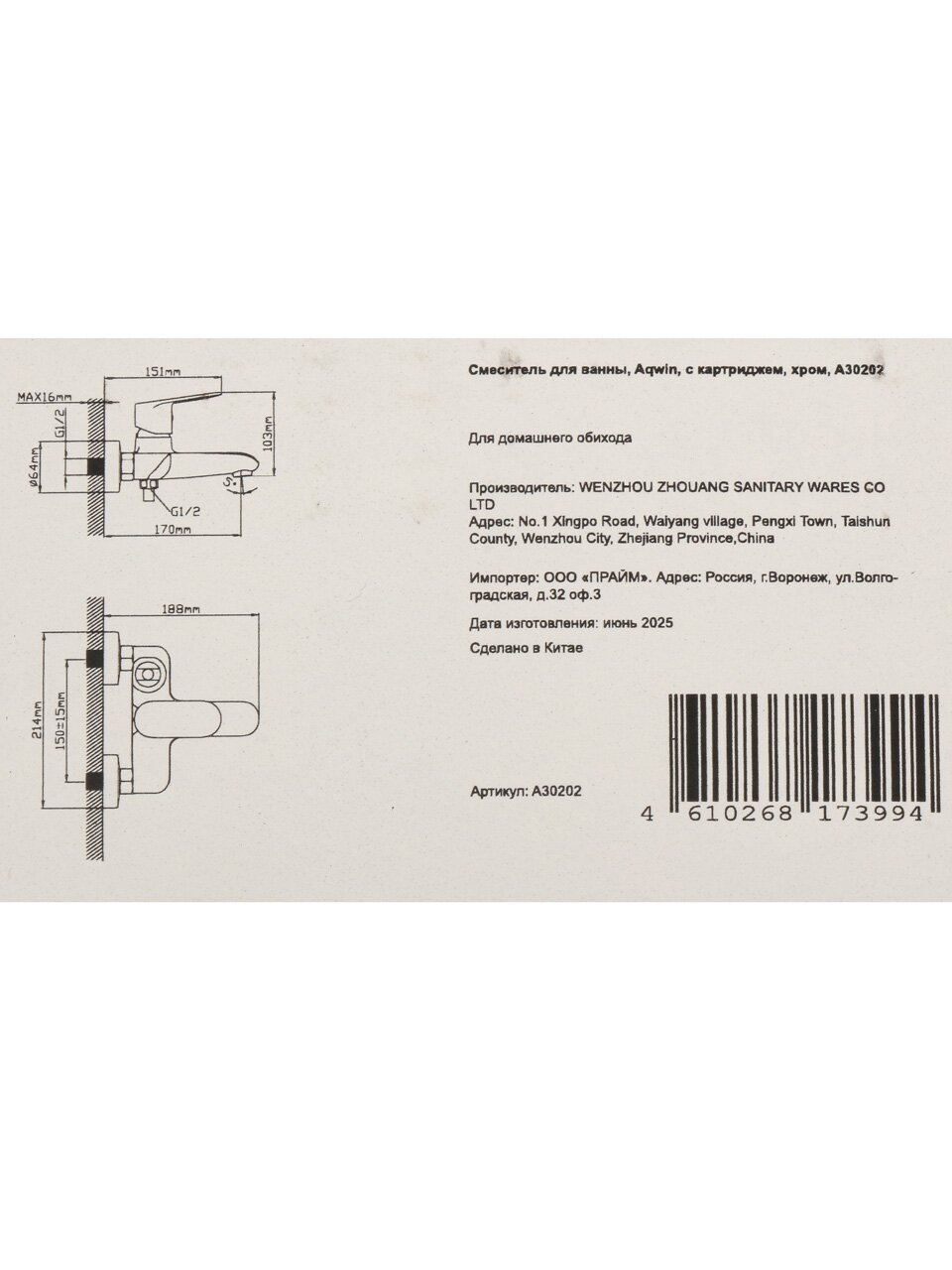 Смеситель для ванны, Aqwin, с картриджем, хром, A30202
