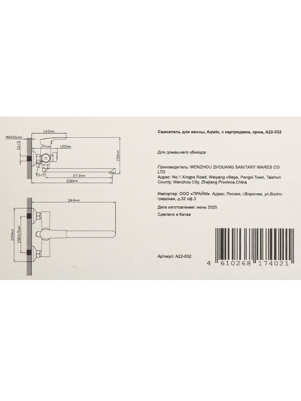 Смеситель для ванны, Aqwin, с картриджем, хром, A22-032