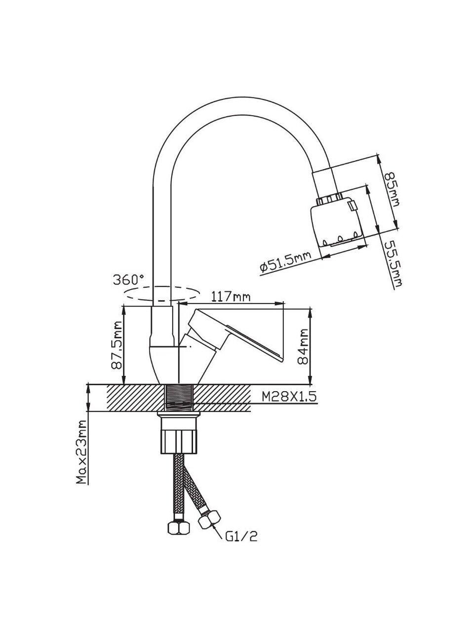 Длина гибкого излива — 21,5 см, высота — средняя, монтаж через 1 отверстие диаметром 35 мм. Комплектуется гибкой подводкой, стандарт подключения — 1/2", цвет — черный хром, стиль — современный.