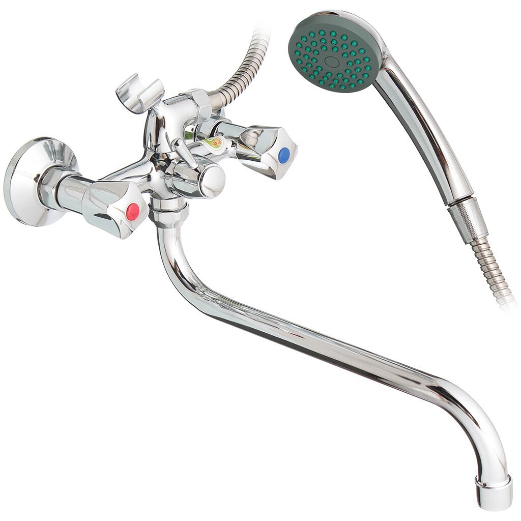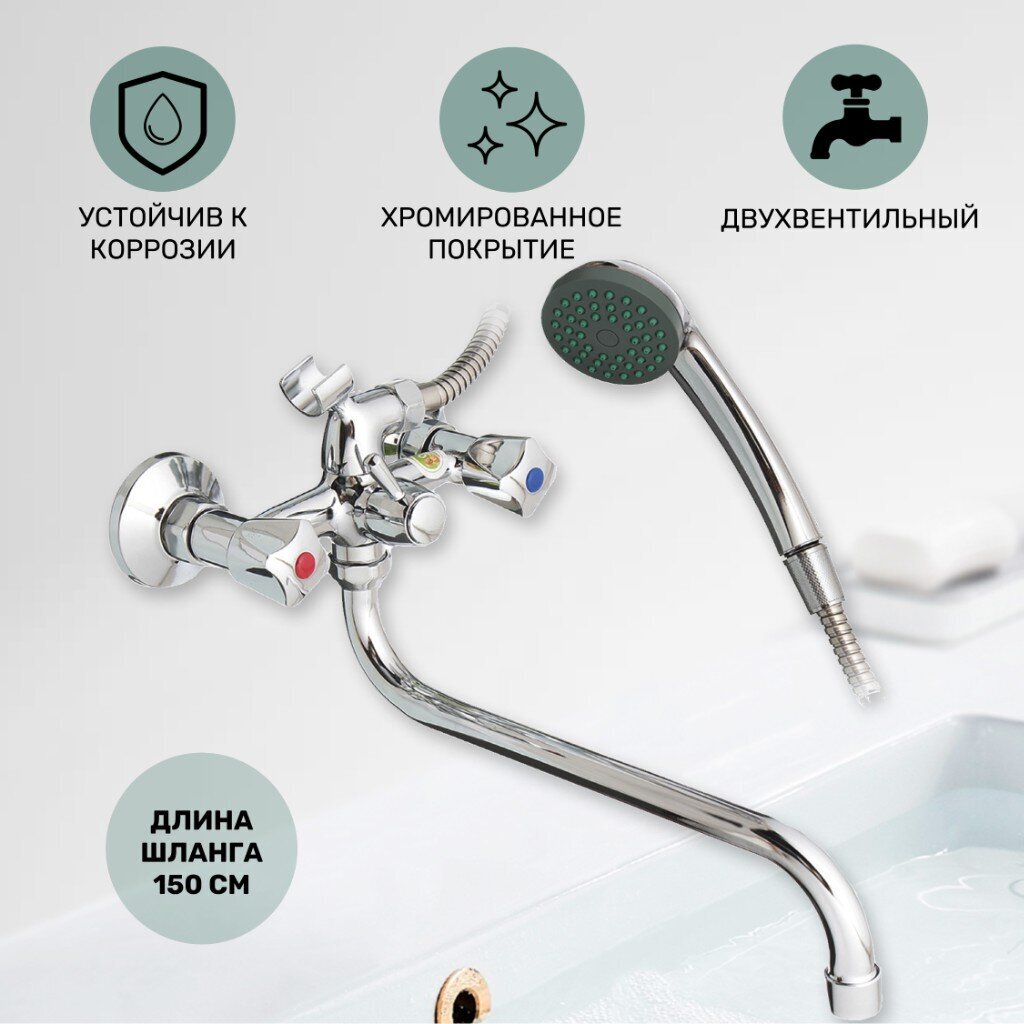 - Двухвентильное управление и поворотный длинный излив — удобно для ванны и душа, легко регулировать температуру.