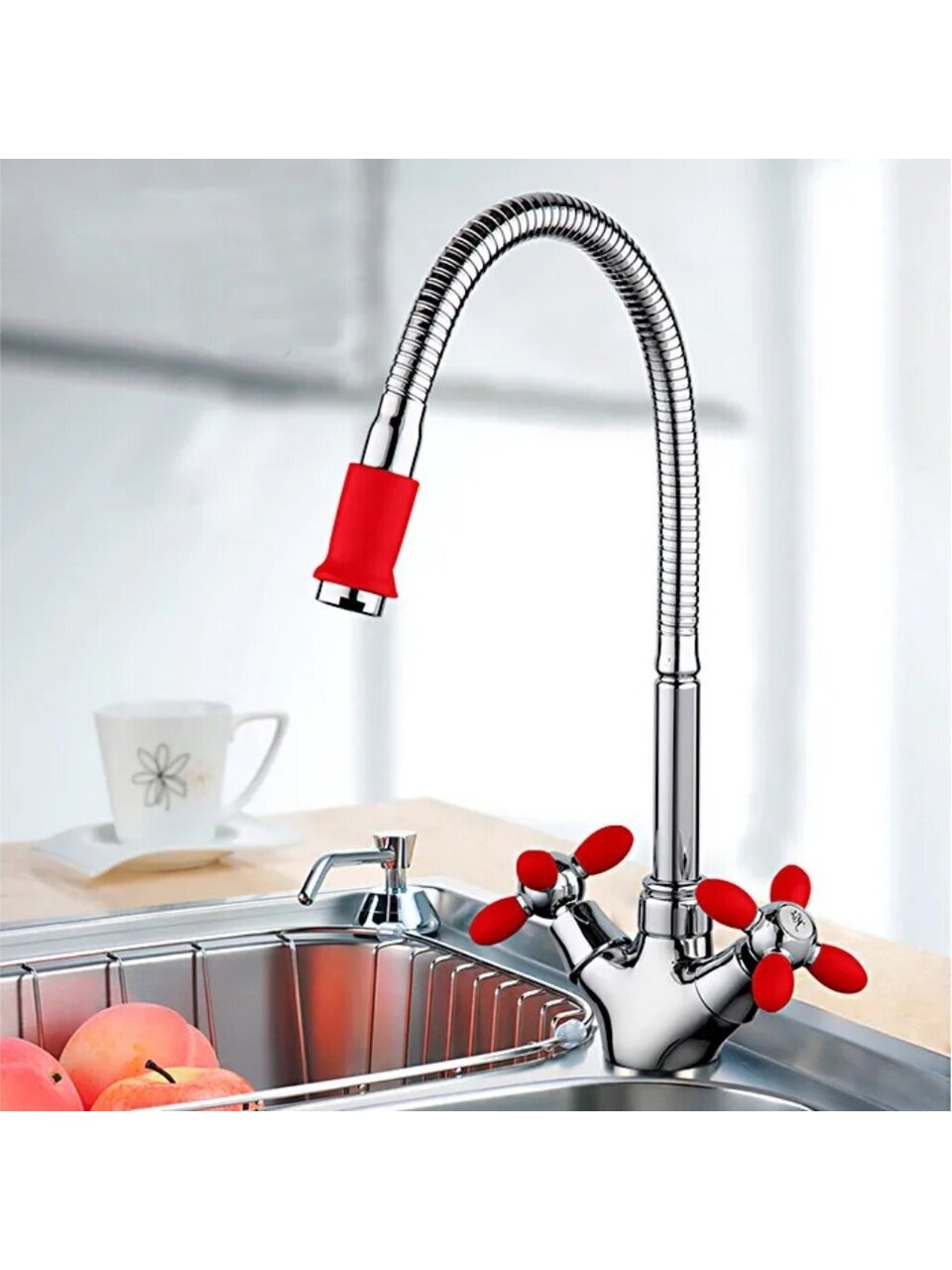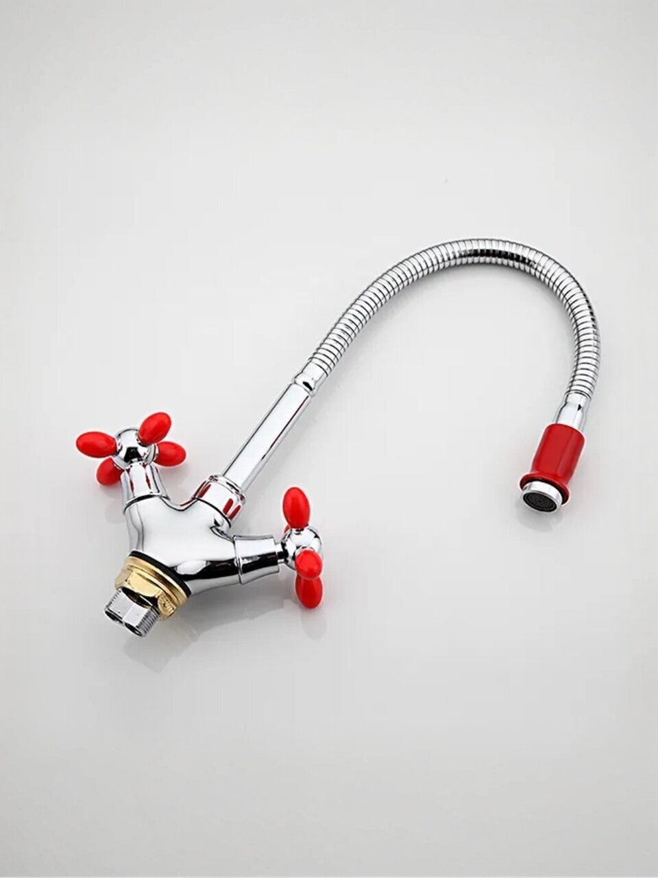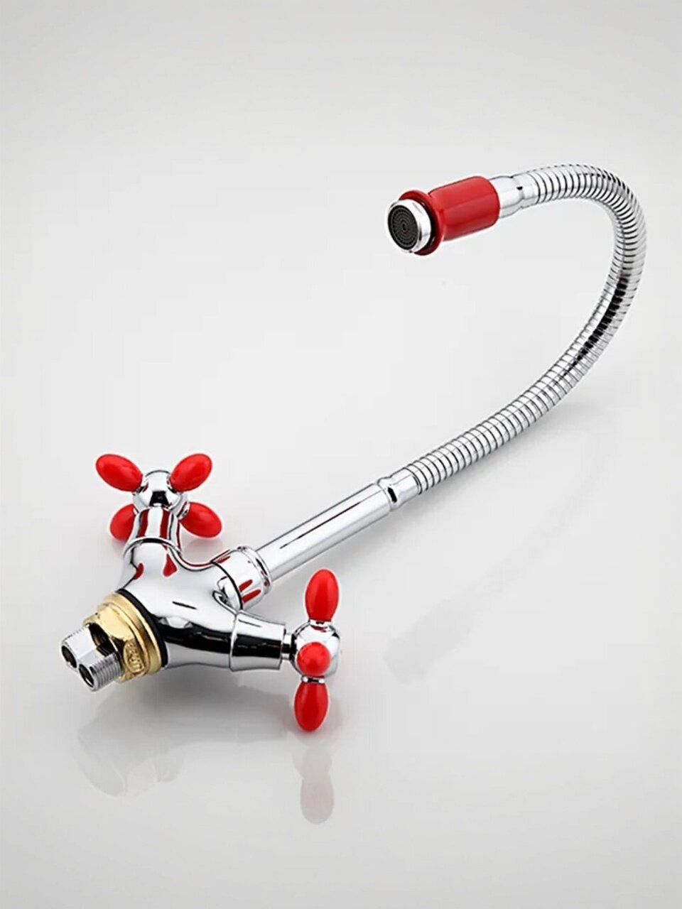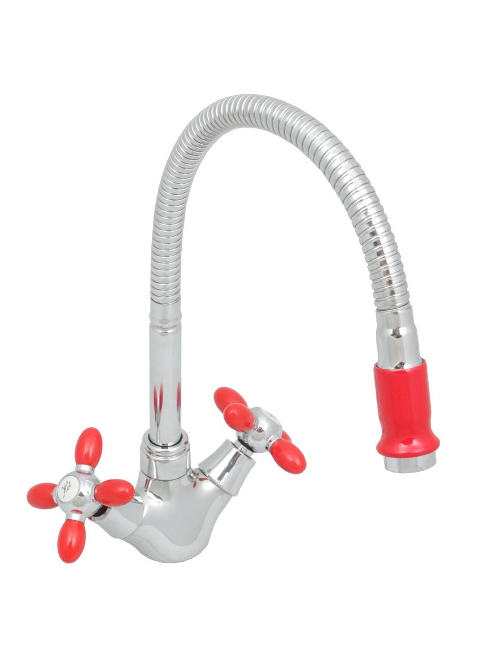 Гибкий смеситель для кухни Frud R43127-10: стильный красный акцент, керамическая кран-букса, монтаж за 10 минут — комфорт и долговечность по доступной цене