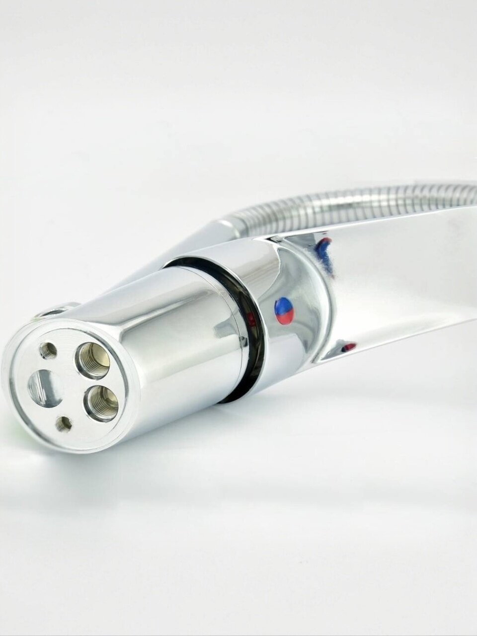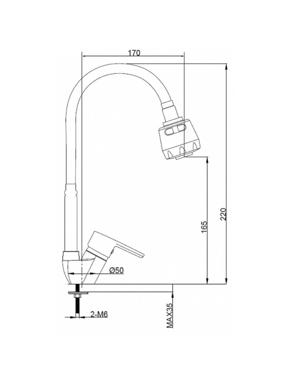 В отличие от моделей с коротким или жестким изливом, гибкая конструкция дает больше свободы в использовании и подходит для нестандартных моек. Хромированная поверхность устойчива к царапинам и легко очищается, а монтаж через одно отверстие (35 мм) не требует сложной установки. Если вы спрашиваете, «подходит ли этот смеситель для дачи» — да, конструкция рассчитана на стандартную гибкую подводку 1/2", что облегчает подключение даже при нестабильном давлении воды.