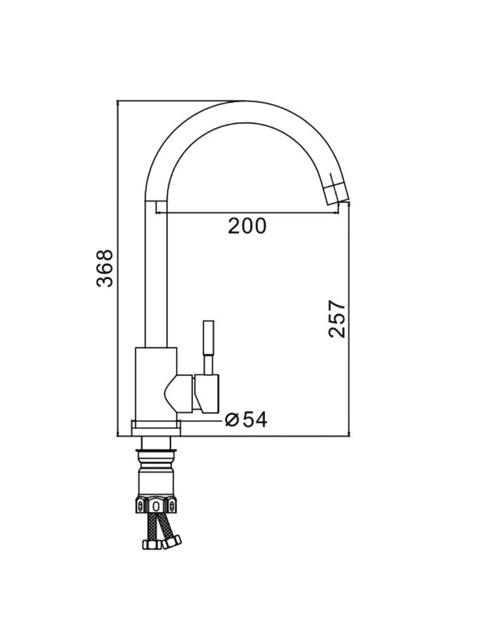 Высота излива составляет 25,7 см, длина — 20 см. Излив высокий, поворотный, что удобно для наполнения больших кастрюль и мытья посуды.