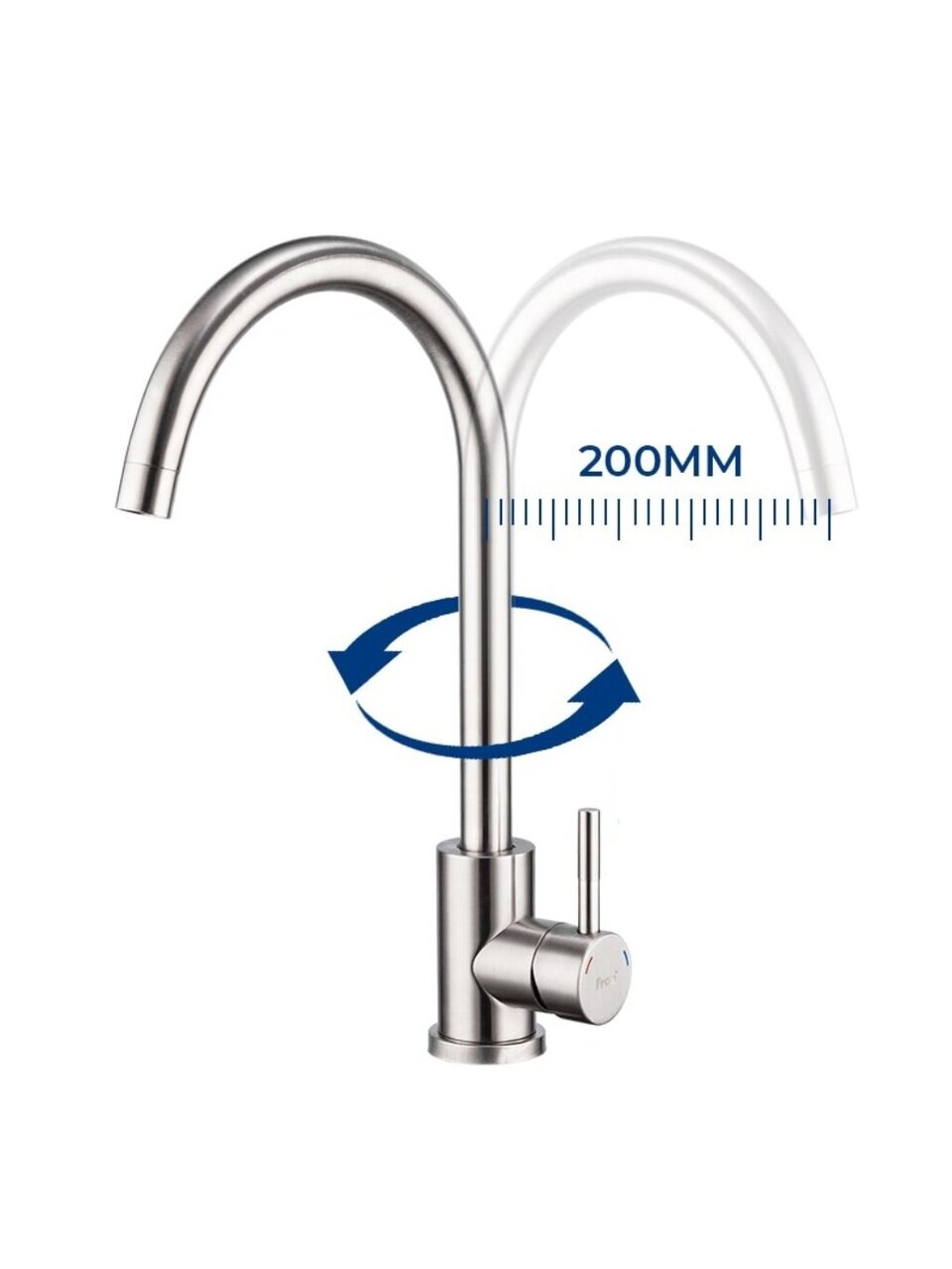 Смеситель для кухни Frap F40899: нержавеющая сталь, высокий излив 25,7 см, плавный рычажный контроль — долговечность и стиль по выгодной цене.