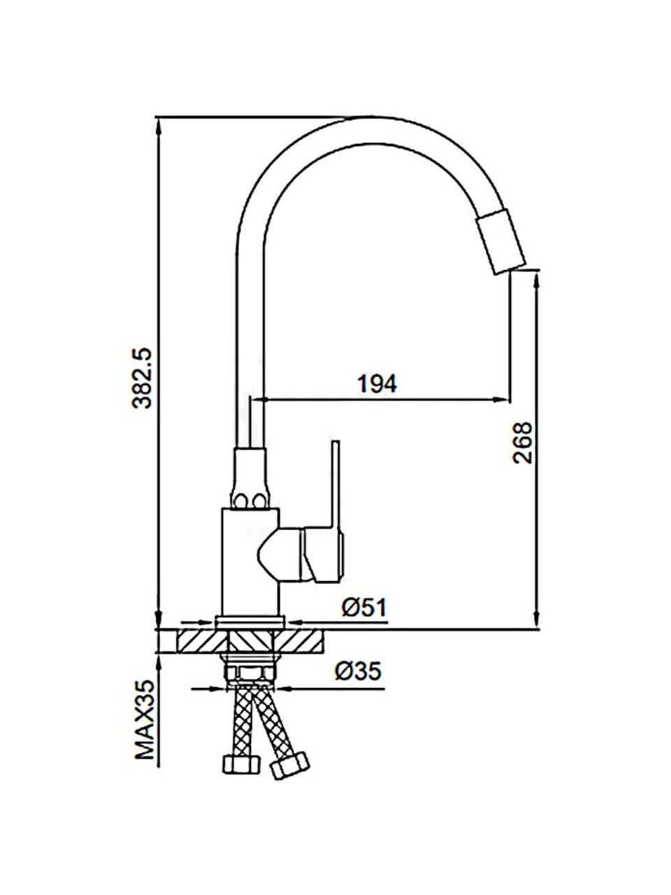 - Корпус из нержавеющей стали, керамический картридж — износостойкость, высота излива 26,8 см, длина 19,4 см