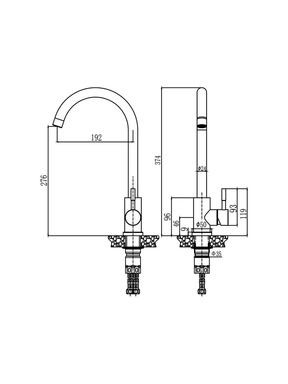 Для монтажа требуется 1 отверстие диаметром 35 мм, стандартная подводка 1/2". Крепление осуществляется гайкой, что обеспечивает надежную фиксацию на кухонной мойке.