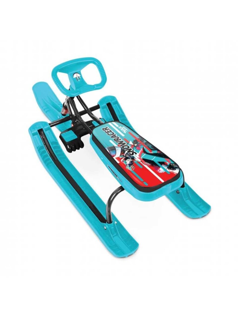 - Руль классической формы свободно управлять снегокатом, а веревочный буксировочный трос легко даст везти снегокат за собой;