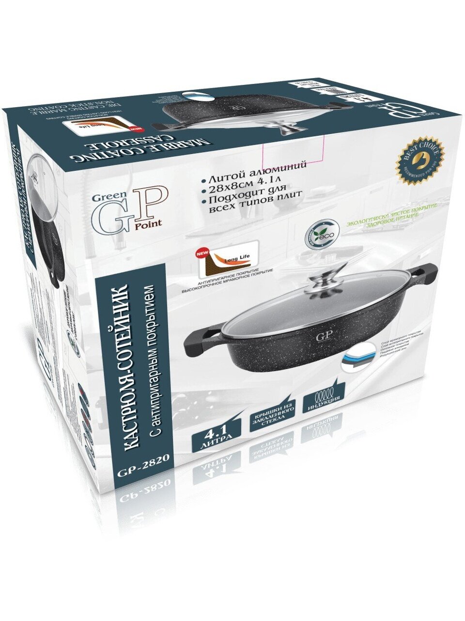 Вы можете приобрести «Сотейник алюминий, 28 см, 4.1 л, антипригарное покрытие, GreenPoint, Мрамор, 2820-GP, с крышкой, индукция» и другие товары в нашем интернет-магазине в Казани по низким ценам и с бесплатным самовывозом.