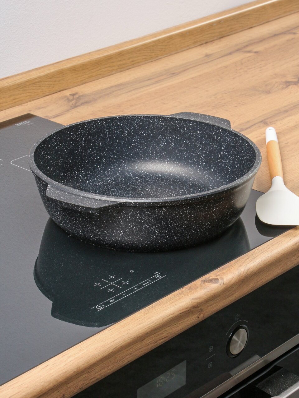 Антипригарный слой позволяет готовить без пригорания даже на неидеальных плитах, экономит время на мытьё, увеличивает срок службы посуды.