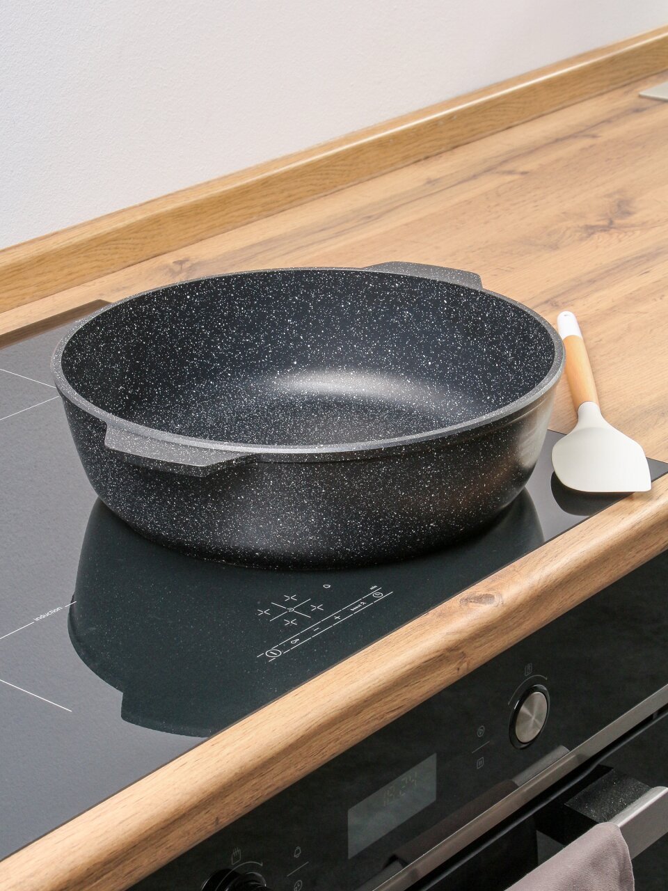 Жаровня алюминий 5 л с антипригарным покрытием — оптимальный выбор для тех, кто ищет, какую жаровню купить для плиты или духовки. Литой алюминий обеспечивает легкость и прочность, а покрытие «Гранит» предотвращает пригорание даже при минимальном количестве масла. Если вы задаётесь вопросом, чем отличается эта модель от обычных чугунных или стальных жаровен, ответ прост: она легче, быстрее нагревается, проще в уходе и не требует специальной подготовки.