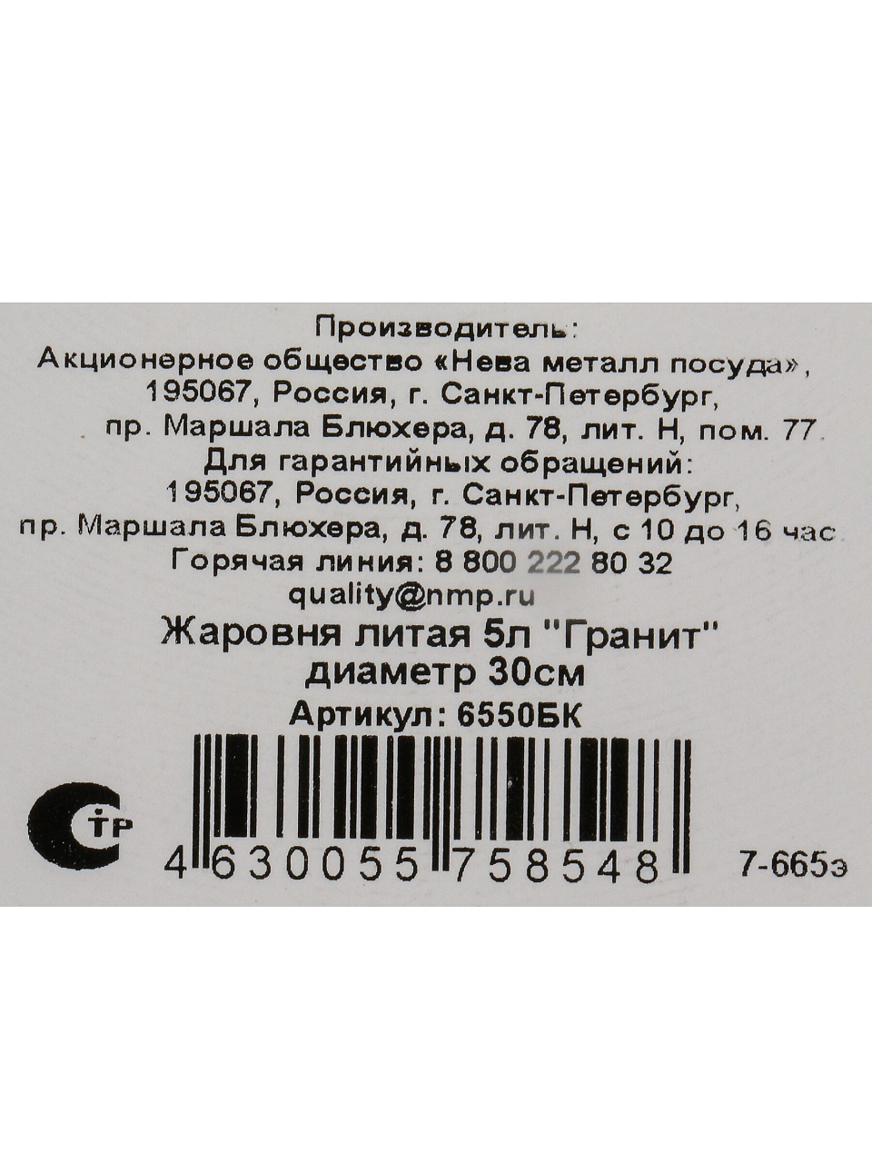 Жаровня алюминиевая 5 л с антипригарным покрытием Нева Металл Гранит 6550БК — готовьте больше без пригорания: идеальна для семьи, дачи и подарка.