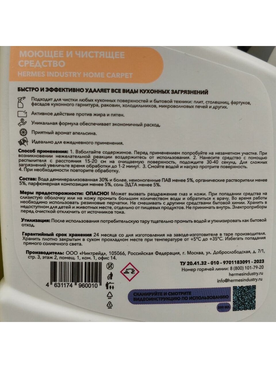 Откройте для себя эффективное решение для чистоты вашей кухни с чистящим средством Hermes Industry Home. Универсальный спрей объемом 500 мл станет вашим надежным помощником в борьбе с загрязнениями.