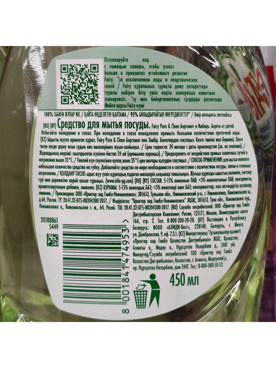 Вы можете приобрести «Средство для мытья посуды Fairy, Pure & Clean Бергамот и Имбирь, 450 мл» и другие товары в нашем интернет-магазине в Тамбове по низким ценам и с бесплатным самовывозом.