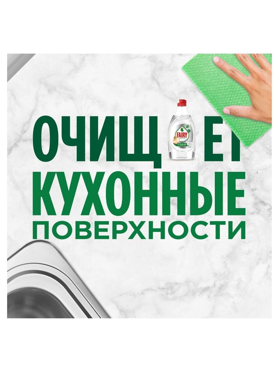 - Активные компоненты Fairy отмывают жир даже в холодной воде.