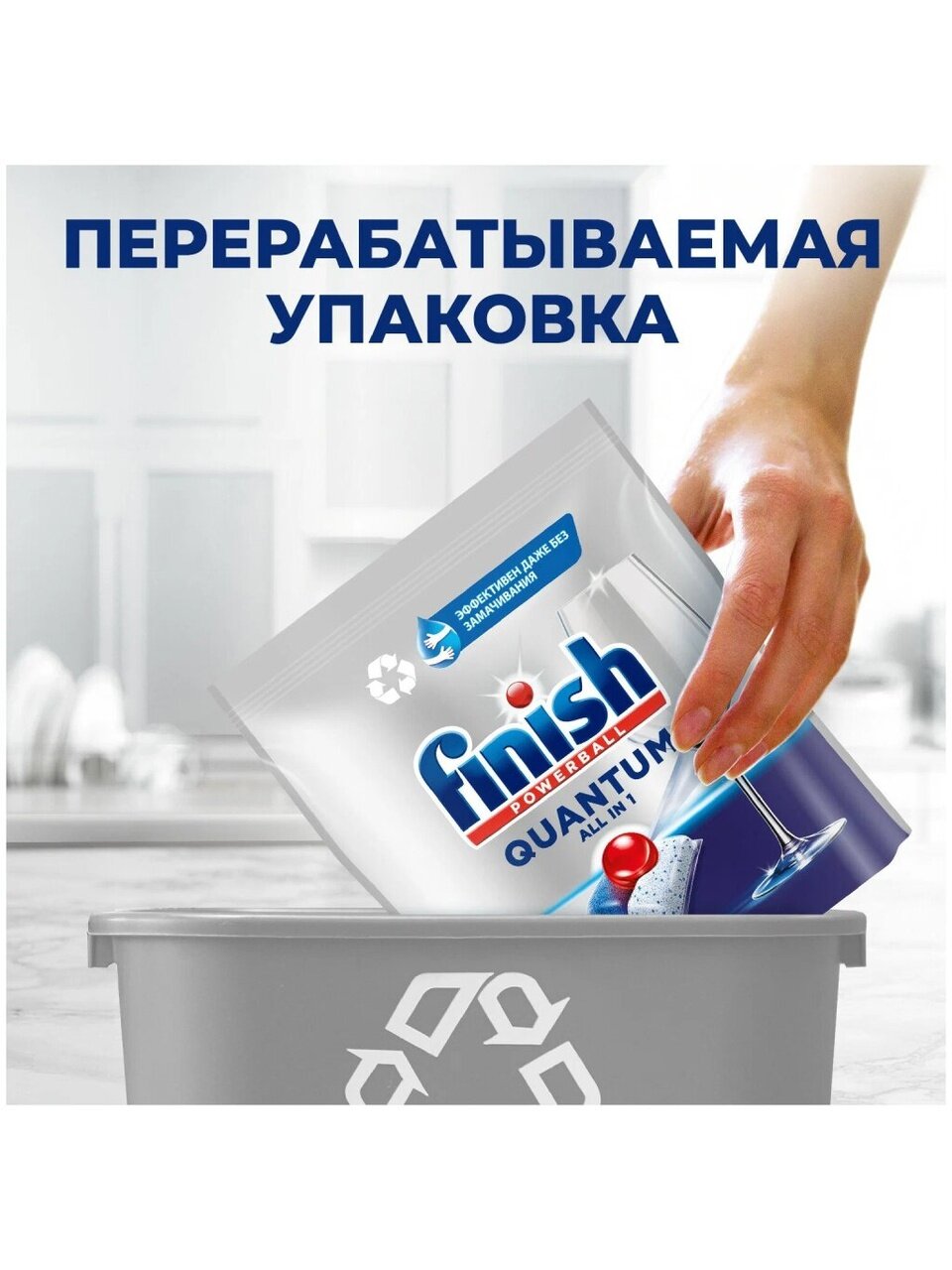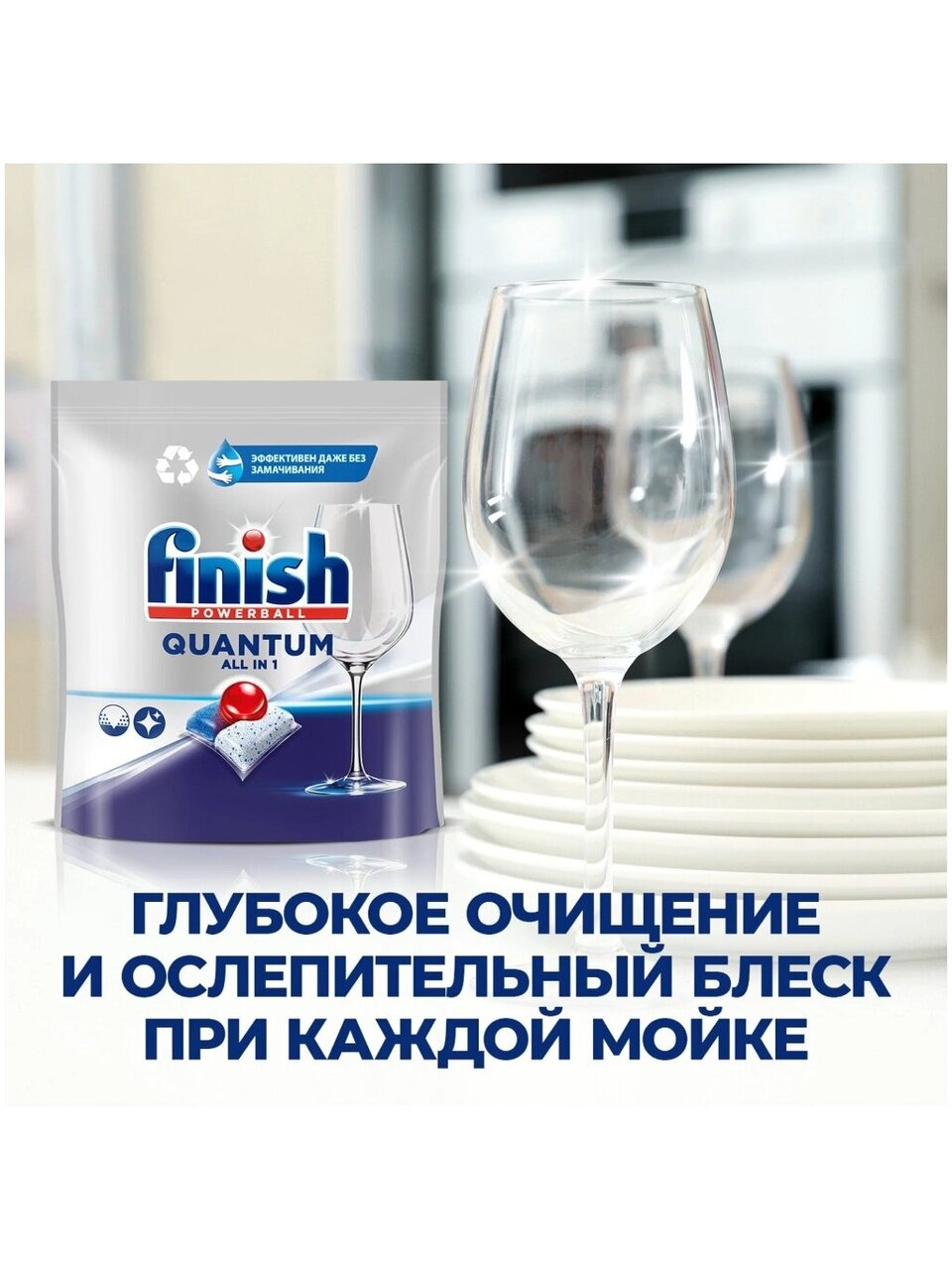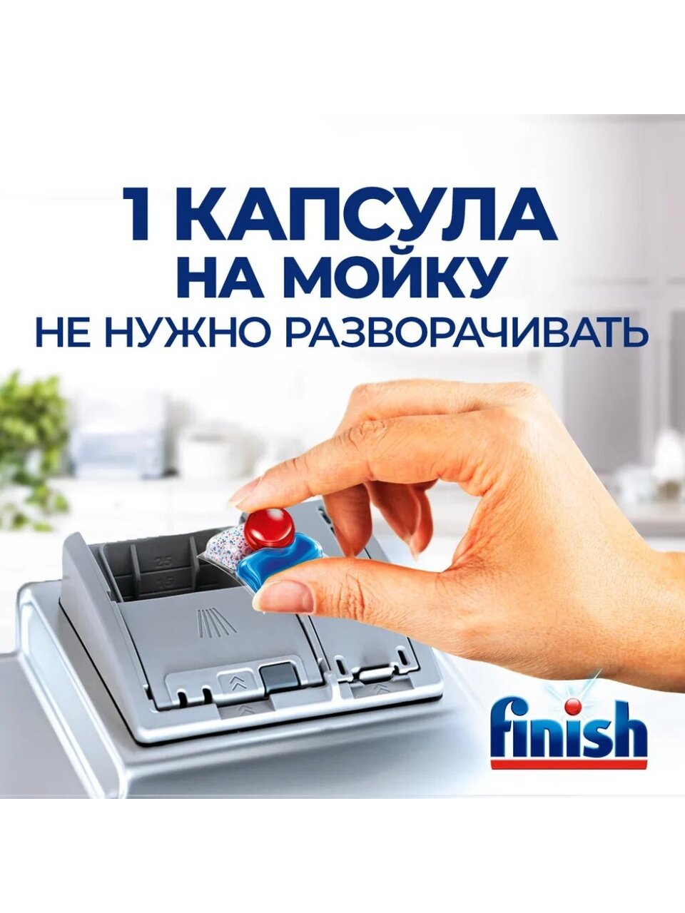 Finish Quantum All in 1 обеспечивает глубокое очищение и ослепительный блеск при каждой мойке. Компактная 3-камерная капсула эффективно справляется с различными видами сложных загрязнений даже без предварительного замачивания!