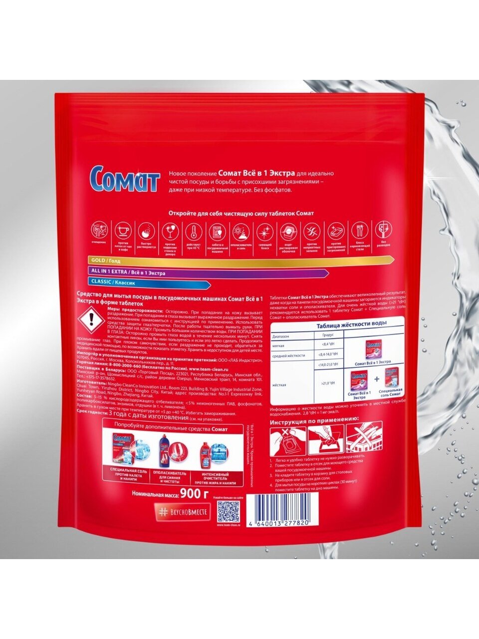 Таблетки для посудомоечной машины Сомат, All in 1 Extra, 50 шт, 0.9 кг