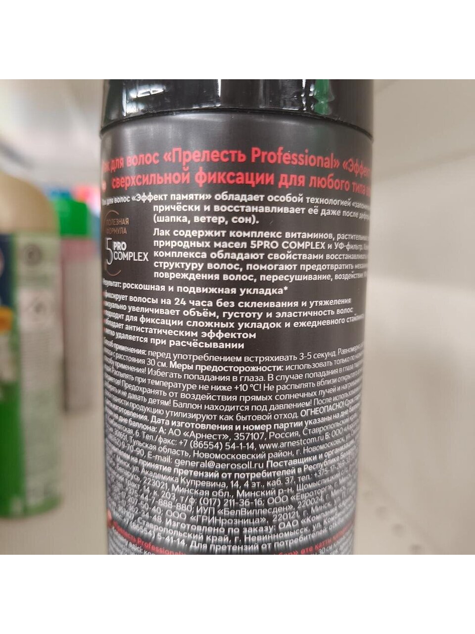 Вы можете приобрести «Лак для волос Прелесть Professional, Эффект памяти, сверхсильная фиксация, 300 мл» и другие товары в нашем интернет-магазине в Старом Осколе по низким ценам и с бесплатным самовывозом.