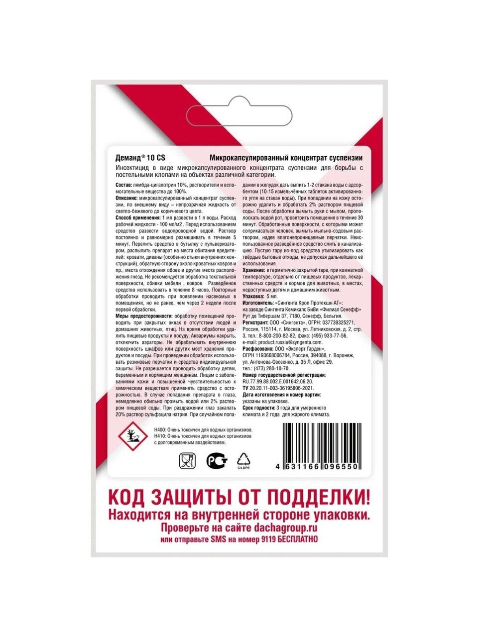 Вы можете приобрести «Инсектицид Деманд, от постельных клопов, жидкость, 5 мл, Expert Garden» и другие товары в нашем интернет-магазине в Ярославле по низким ценам и с бесплатным самовывозом.