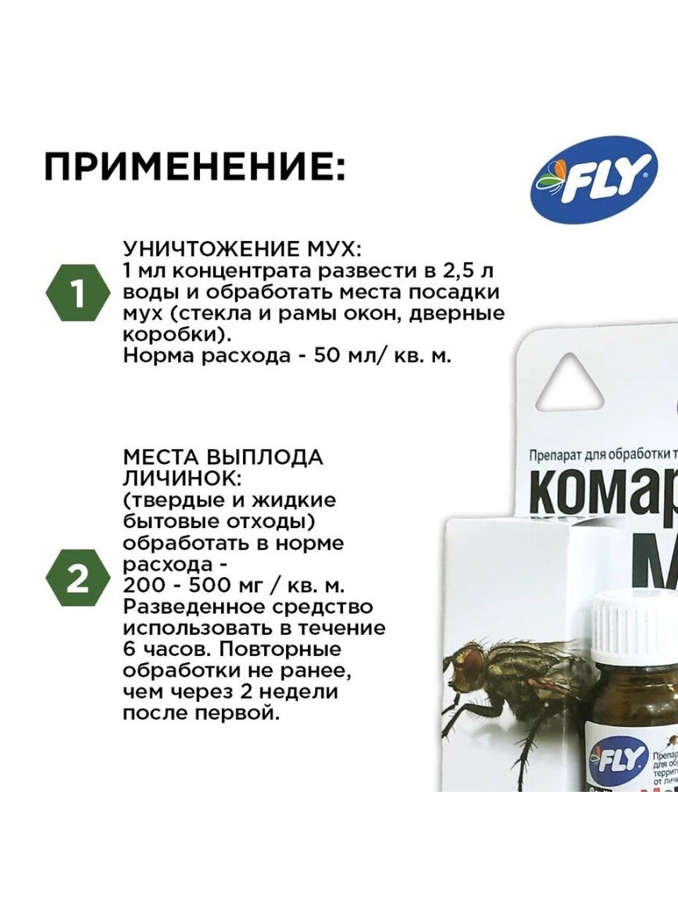 Препарат от личинок комаров и мух Fly подходит для обработки приусадебных, дачных и садовых участков. Используется в местах выплода личинок, гарантирует их полное уничтожение. Средство оказывает длительный эффект.
