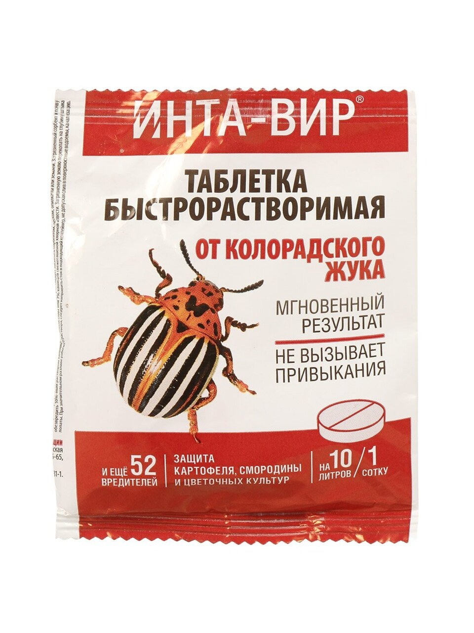 Инсектицид от колорадского жука Инта-вир в таблетке 8 г – эффективное средство для защиты картофеля и цветочных культур от вредителей. Удобная форма в таблетке обеспечивает простое и быстрое приготовление раствора для опрыскивания. Быстрое действие и высокая эффективность позволяют сохранить урожай и обеспечить здоровье растений.