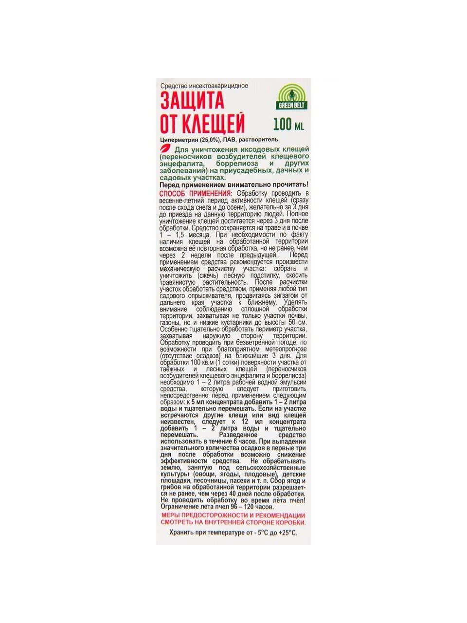 Жидкость Грин Бэлт "Защита участка" - защита УЧАСТКА от иксодовых (энцефалитных) клещей.