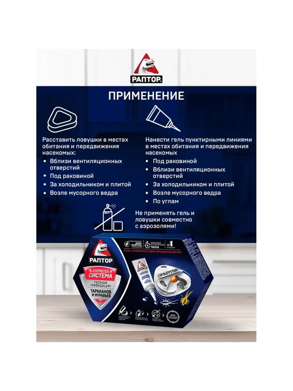 - Важно! Не использовать аэрозоли от насекомых одновременно с гелем и ловушками, т.к. их запах отпугивает тараканов от геля и приманки.