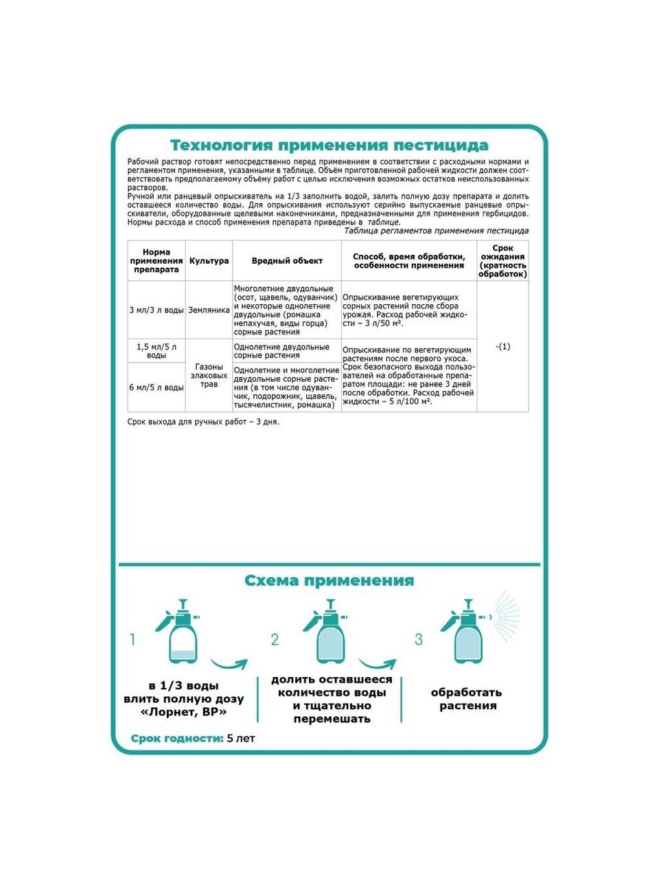 Гербицид Лорнет, 50 мл от Щелково Агрохим — надежное средство от сорняков, созданное для эффективной борьбы с нежелательной растительностью на газонах и землянике. Этот гербицид уничтожает сорняки вместе с корневой системой, обеспечивая длительный период защиты до 60 дней. Лорнет — выбор профессионалов для применения весной и летом.