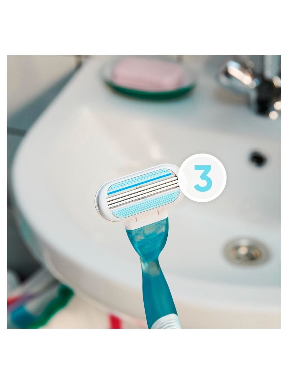 - Голубая полоска-индикатор меняет цвет, сообщая о том, когда пора менять лезвия Venus для обеспечения оптимального качества бритья.