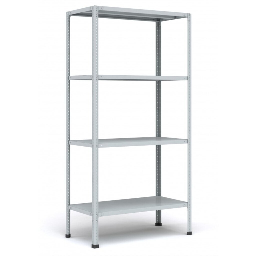 - Комплектация: 4 стойки 2000 мм, 4 полки 300х1000 мм, крепеж, пластиковые подпятники.