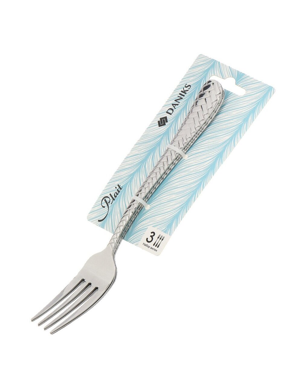 Вилка Daniks Plait: нержавеющая сталь, 3 предмета — стильный столовый набор для дома и дачи, идеальный выбор на подарок и ежедневное использование.
