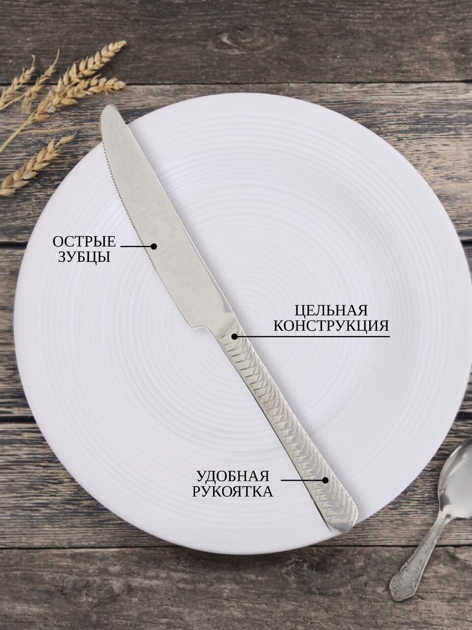 Набор ножей Daniks Plait — практичный выбор для тех, кто ищет столовые приборы из нержавеющей стали без покрытия. Оптимальная длина 23,5 см подходит для нарезки мяса, рыбы, овощей и фруктов. Благодаря цельнометаллической ручке ножи удобно лежат в руке и не скользят даже при длительном использовании. Если вы ищете, какой столовый нож выбрать для сервировки или что лучше для пикника, обратите внимание на эту модель: она не требует особого ухода и не ржавеет при правильном использовании.