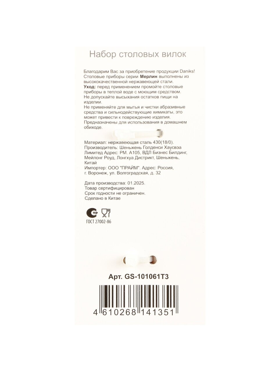 Вы можете приобрести «Вилка нержавеющая сталь, 3 предмета, столовая, Daniks, Мерлин, GS-101061T3» и другие товары в нашем интернет-магазине в Обнинске по низким ценам и с бесплатным самовывозом.