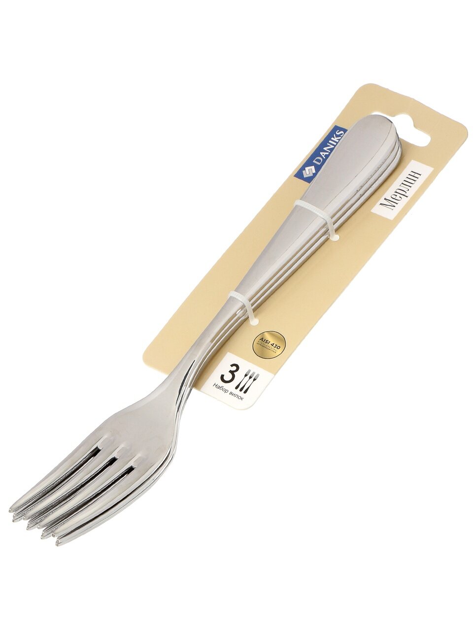 Вилка столовая Daniks Мерлин, 3 шт — долговечная нержавеющая сталь, современный дизайн, оптимальный выбор для дома, дачи и подарка.