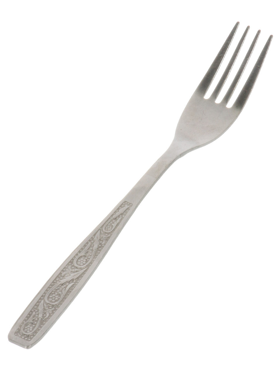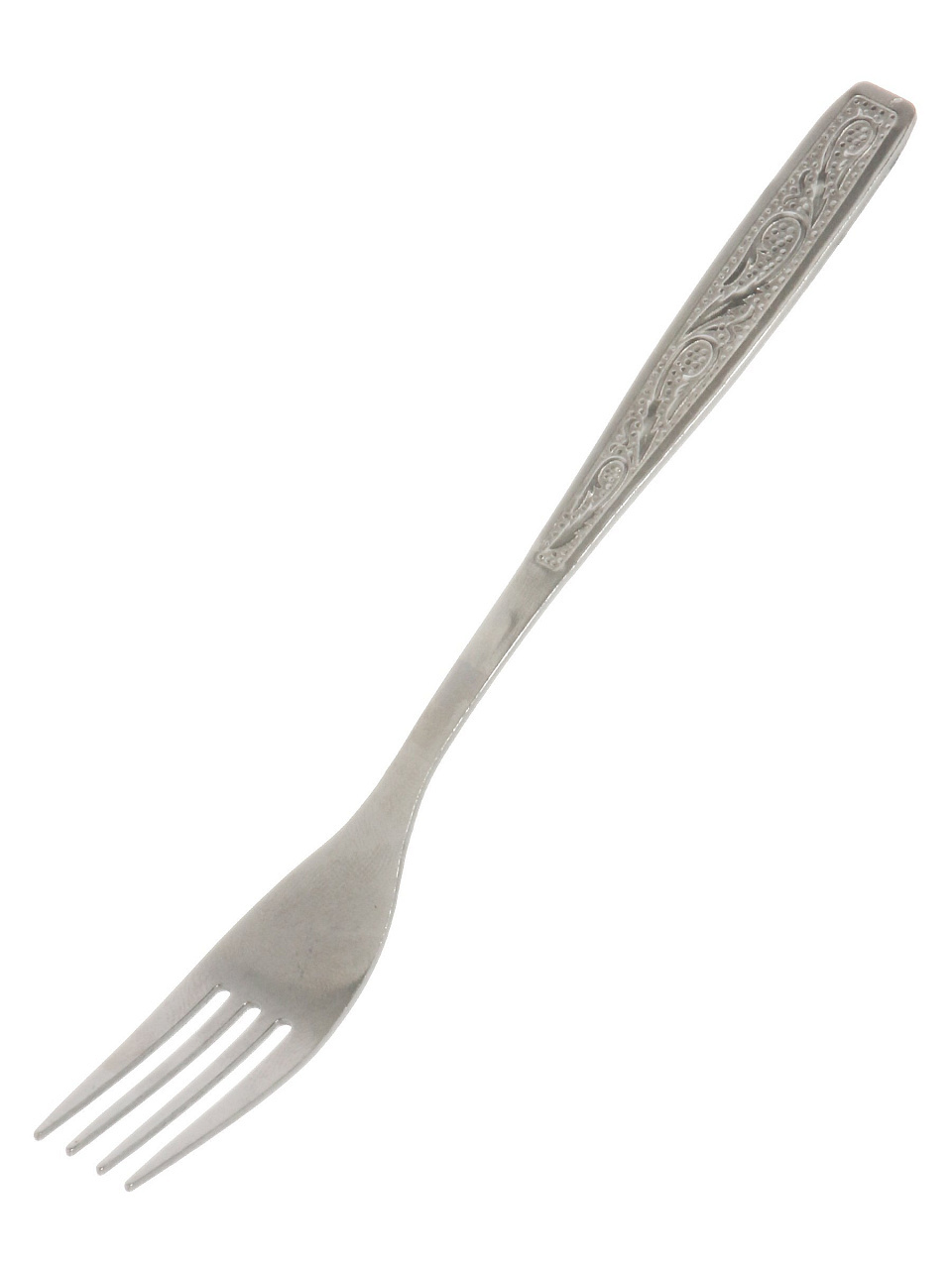 Вилка выполнена из нержавеющей стали, цвет серебристый, ручка металлическая, без дополнительного покрытия.